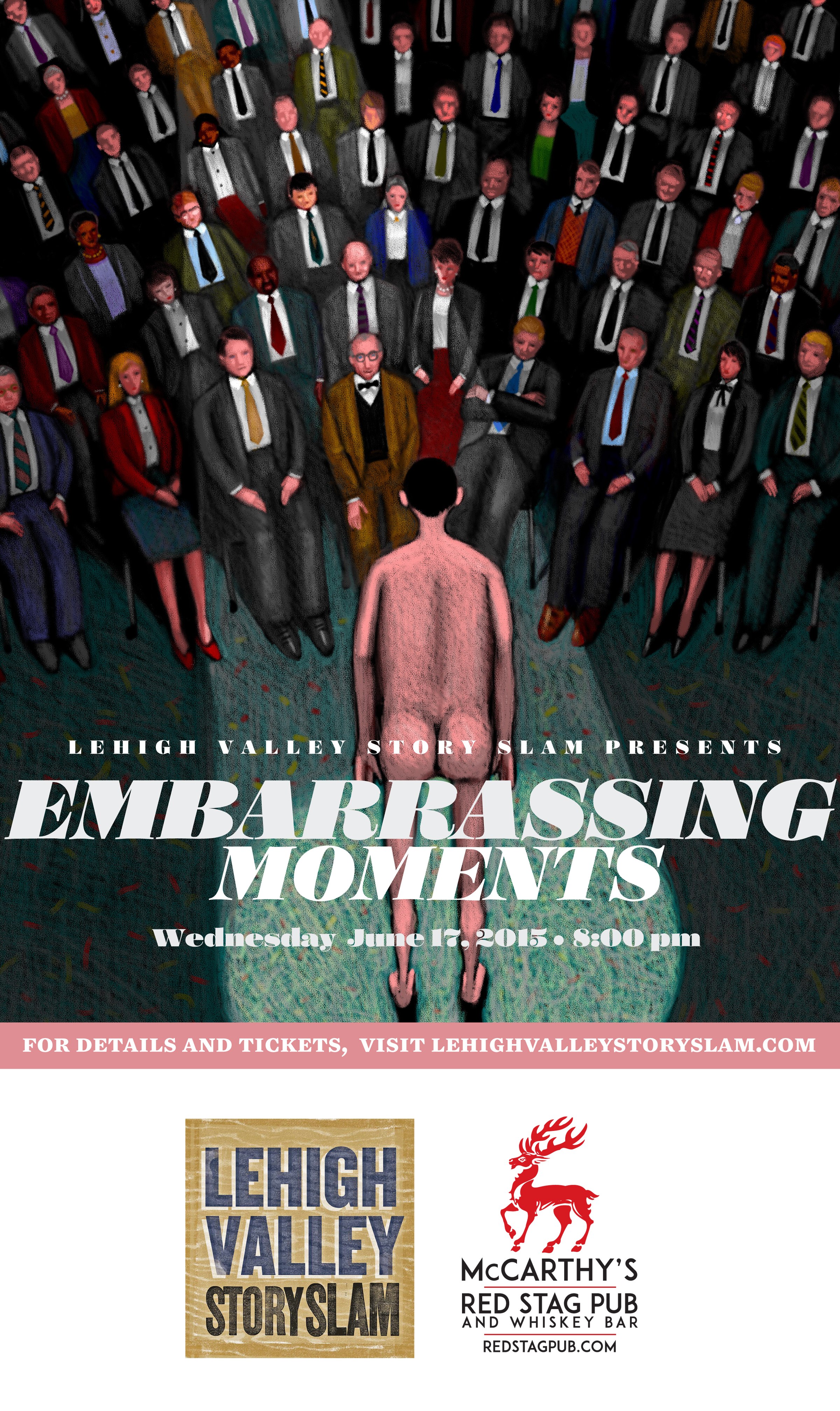 Join us on Wednesday, June 17th, at 8 p.m., and listen to brave storytellers as they “bare all” in telling stories about their most “Embarrassing Moments!” How embarrassing will these stories be? Come see for yourself! The 2015 season of Lehigh Valley Story Slam is being held on the second floor of McCarthy’s Red Stag Pub and Whiskey Bar in downtown Bethlehem, PA. Reserve your seats by ordering tickets before the night of the show for $8 (plus fee.) Click HERE. Tickets at the door are $10.